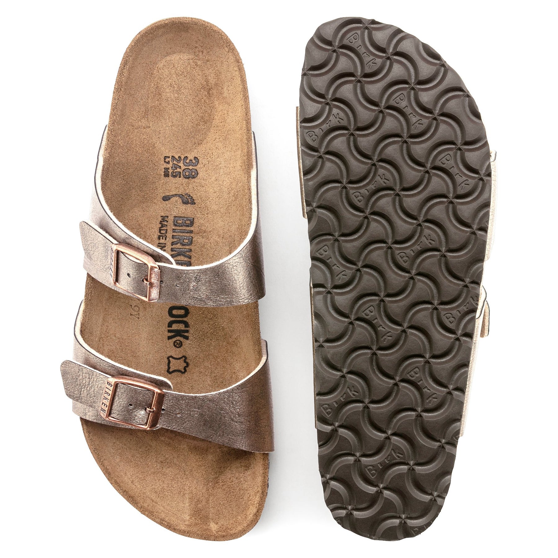 • Shimmery Birko-Flor® synthetic leather upper